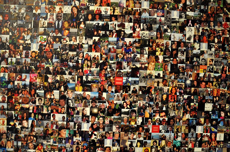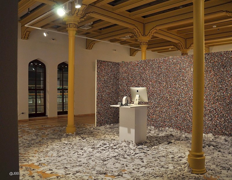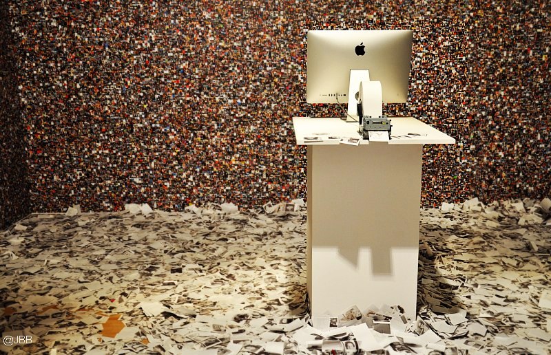 Olbrzymia ściana wyklejona tysiącem miniaturowych zdjęć użytkowników facebook’a. Przed nią automat, z którego co kilka minut wypada wydrukowane zdjęcie, wysłane z programu instagram z tagiem #selfie. Na podłodze gruba warstwa zadrukowanych karteczek.