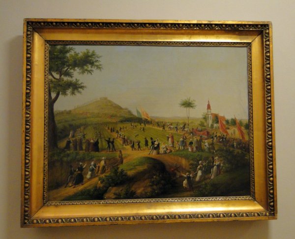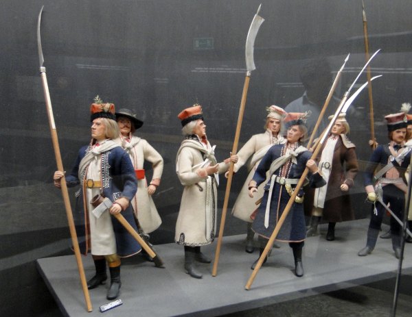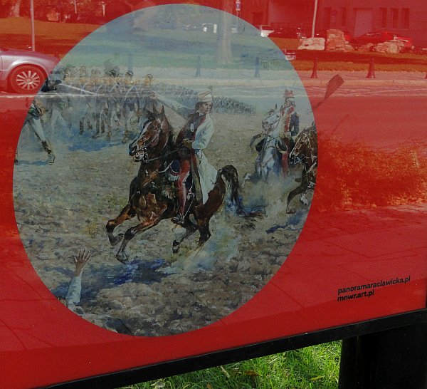 - Obraz Teodora Stachowicza – fragment ukazujący wóz z ziemia spod Maciejowic udekorowany koroną z kos