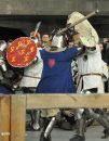 Widzowie tak skutecznie oblepili ogrodzenie „ringu”, że z trudem udało się uchwycić kilka dynamicznych scen walki osobników w ciężkich zbrojach. Zbroje i broń stanowią repliki średniowiecznych. Mają te same wymiary i wagę. Zasady walki opracowano współcześnie. Wprawdzie broń jest tępa, jednak w walce wręcz istnieje duże prawdopodobieństwo urazów. Emocje, wola walki i chęć zwycięstwa, to także czynniki stwarzające groźne sytuacje. Nad bezpieczeństwem rycerzy czuwają sędziowie.