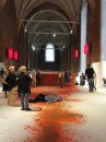 Nawę główną od prezbiterium dzielą schody. W ich obrębie usytuowano instalację malarską, której elementem jest konstrukcja z desek, po których spływa farba, do złudzenia przypominająca krew. Źródeł inspiracji, zdaniem kuratorki wystawy Małgorzaty Devosges-Cuber, należy szukać w historii miejsca niechlubnie naznaczonej postacią Jana Kapistrana, który w 1453 roku przebywał we Wrocławiu i jako „inkwizytor generalny” skazywał Żydów na śmierć przez powieszenie i poćwiartowanie za domniemane akty profanacji .Te krwawe karty historii Wrocławia nie przeszkadzały młodym i starszym widzom na bezpośredni kontakt ze sztuką przez dotyk.