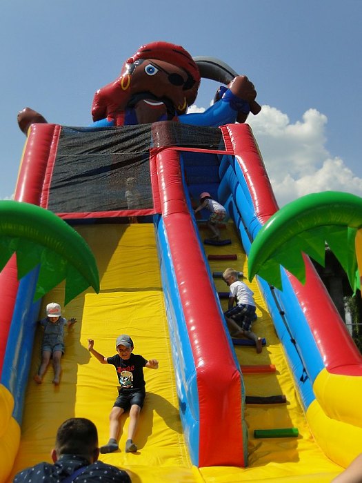 Miejsce zostało wypełnione kolorowymi, nadmuchanymi obiektami, po których można skakać, wspinać się, zjeżdżać, a nawet ukrywać w paszczy rekina. Organizatorzy, także rodzice małoletnich dzieci, pomyśleli o leżakach i świetnym, „kosmicznym” zadaszeniu przed słońcem dla rodziców obserwujących swoje pociechy.